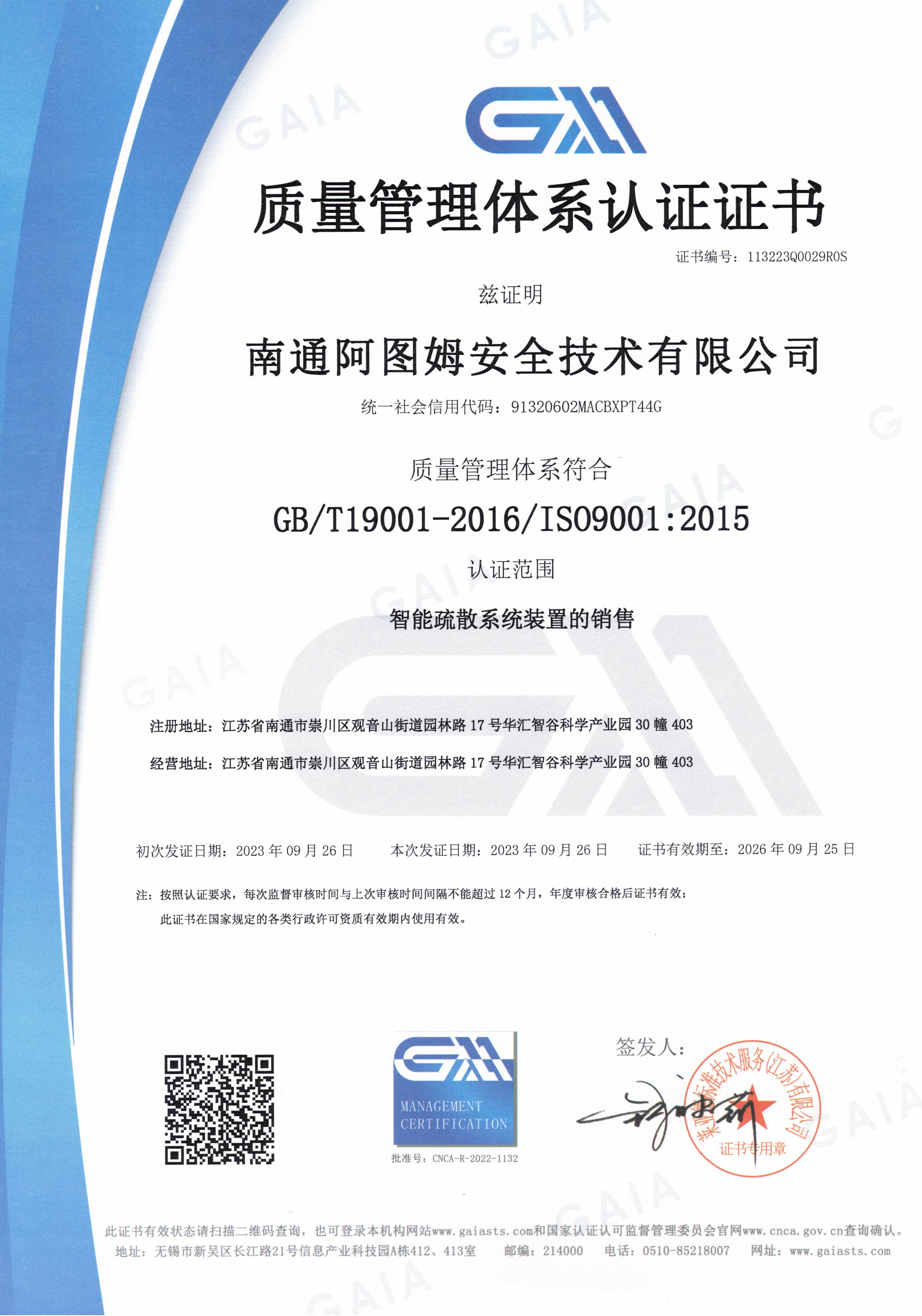 质量管理认证证书